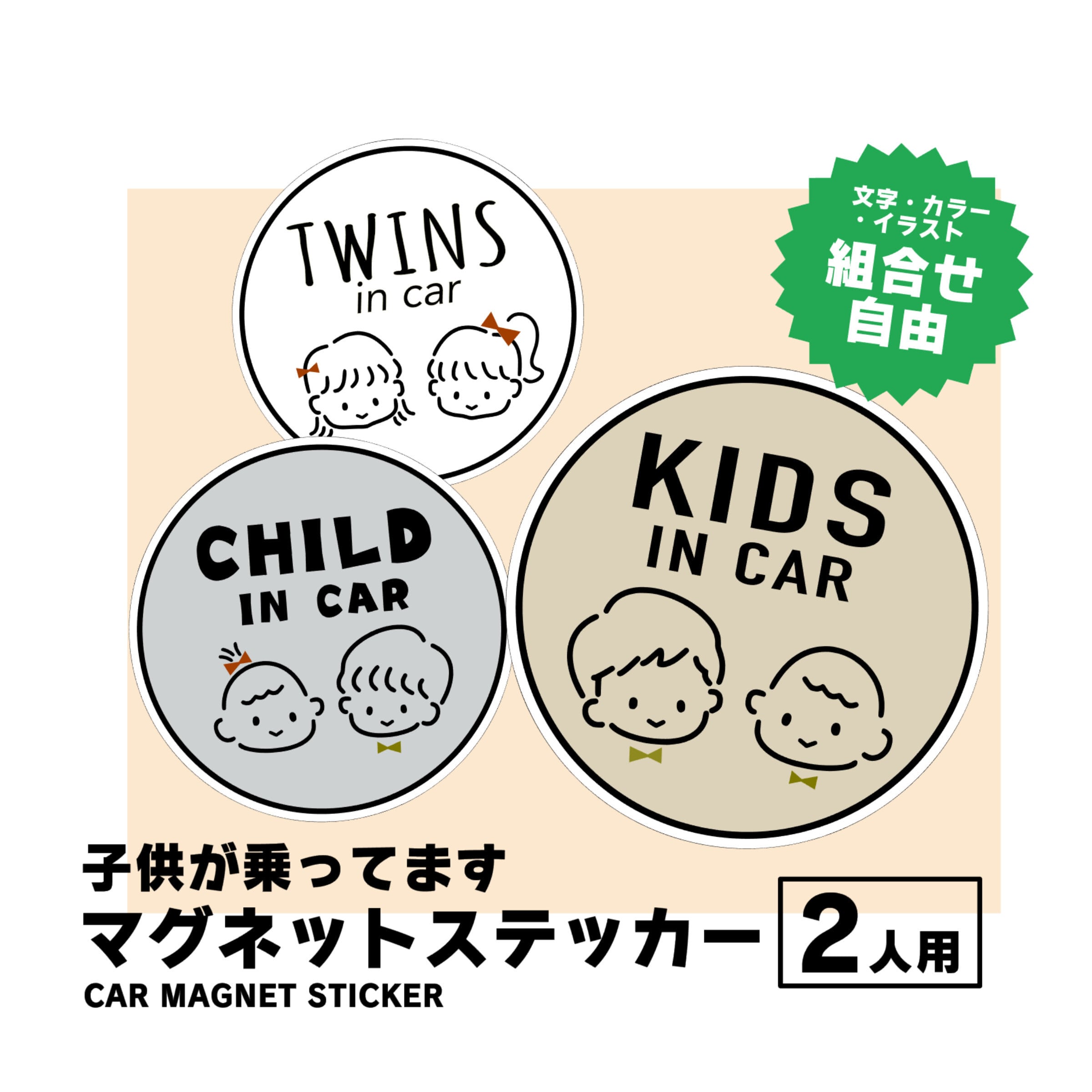 文字と可愛いイラストデザインが特徴で、子供が乗っていることを周囲にアピールします。