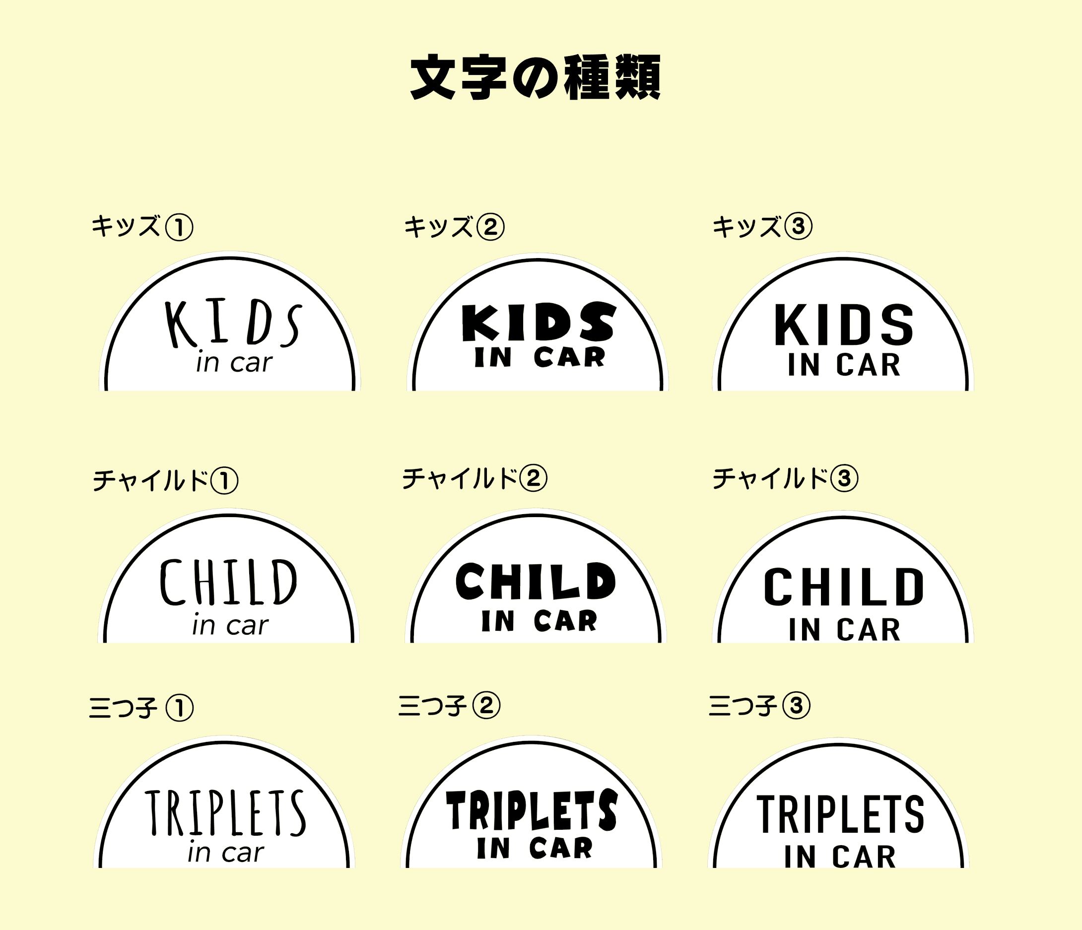 文字と可愛いイラストデザインが特徴で、子供が乗っていることを周囲にアピールします。