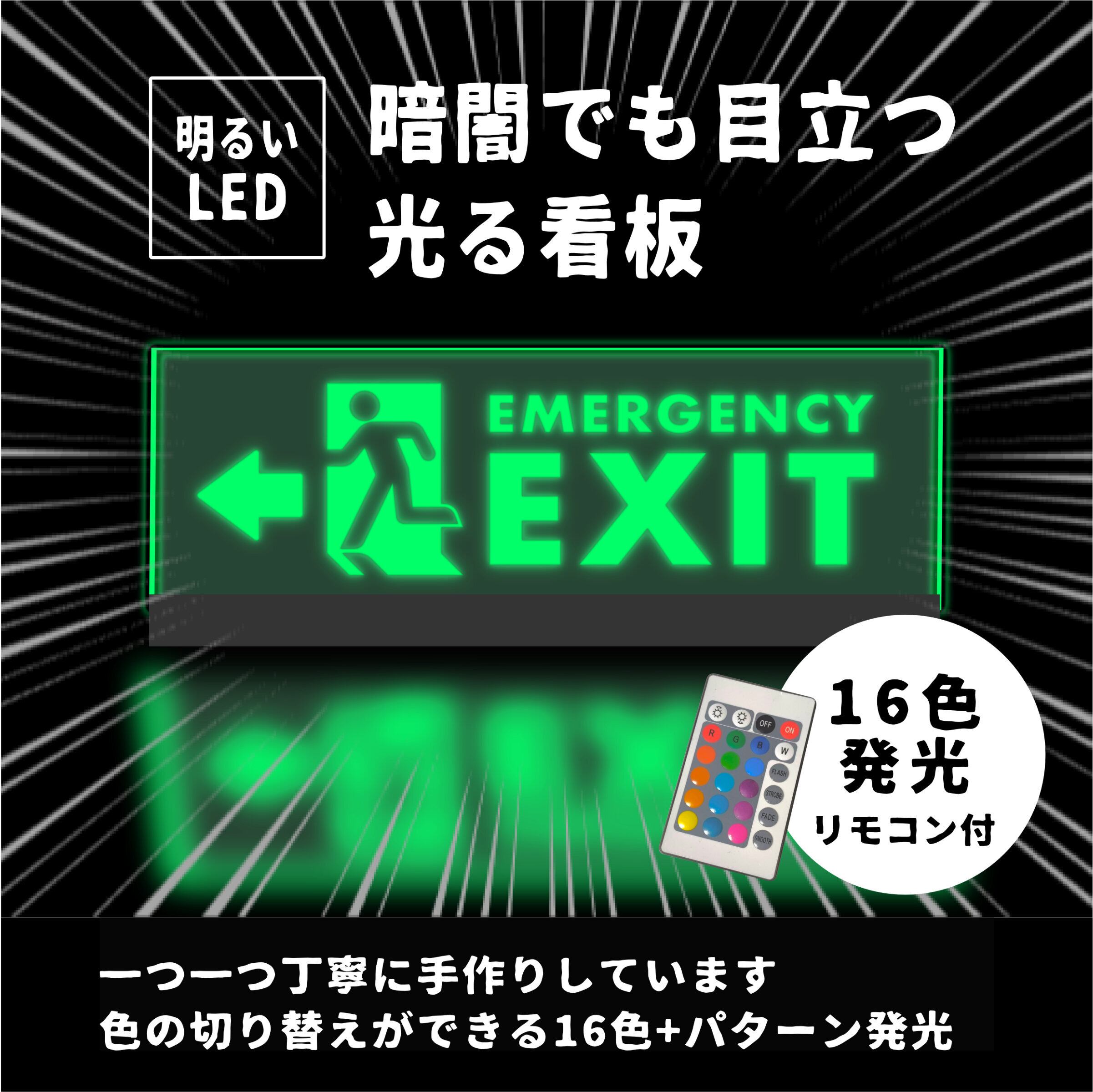 【非常口は左】LEDで光る アクリルプレートライトサイン看板 店内 誘導灯 安全確保 英語表記 業務 アメリカン雑貨